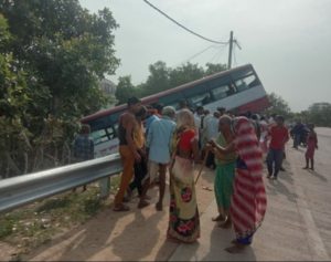 प्रयागराज से चलकर मऊ वाया कर्वी चित्रकूट आने वाली सरकारी रोडवेज बस आज सुबह बाल्मीकि आश्रम के असावर माता लालपुर के मंदिर के सामने अनियंत्रित होकर पलटने से बाल-बाल बची प्रत्यक्षदर्शियों की माने तो ड्राइवर की सूझबूझ की वजह से टला बड़ा हादसा क्योंकि अगर ड्राइवर के द्वारा बस को तत्काल कंट्रोल न किया जाता तो बस गहरी खाई में गिरकर पलट जाते जिससे बड़े हादसे से इनकार नहीं किया जा सकता था लेकिन चालक के सूझबूझ के चलते गाड़ी एवं सवारियों को किसी भी प्रकार की क्षति नहीं पहुंची वही मौके पर रायपुरा थाने का फोर्स पहुंचकर सवारियों को सुरक्षित बस से उतार कर दूसरी बस पर बैठा कर सवारियों को अपने-अपने स्थान तक पहुंचाने का काम किया गया वही हादसे को देखकर सैकड़ों लोगों की भीड़ देखते ही देखते जमा हो गई समाचार लिखे जाने तक बस को निकाला नहीं गया था