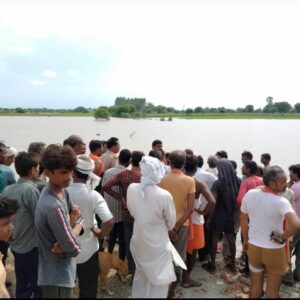 छात्र के डूबने की खबर फैलते ही नदी किनारे ग्रामीणों की जमा हुई भीड,