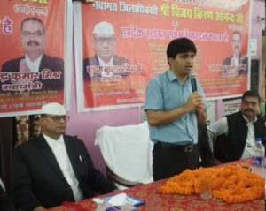 गोरखपुर- जिला अधिवक्ता एसोसिएशन गोरखपुर ने जिला अधिवक्ता संघ सभागार कलेक्ट्रेट परिसर में जिला अधिकारी विजय किरन आनंद का अभिनंदन व स्वागत अध्यक्ष कृष्ण मुरारी त्रिपाठी व महामंत्री योगेंद्र कुमार मिश्रा के नेतृत्व में किया गया। जिलाधिकारी विजय किरन आनंद ने अपने संबोधन में जनपद के समस्त अधिकारियों को निर्देशित किया है कि अधिवक्ता के सम्मान में किसी प्रकार की कमी नहीं होनी चाहिए, हर वादी को दर्द है पीड़ा है हमारा उनके साथ सहानुभूति है उनके मुकदमों का निस्तारण कोर्ट में सुनवाई के दौरान गुण दोष के आधार पर निस्तारित किया जाएगा। इंसानियत और मानवता का ख्याल रख कर उनके साथ कार्य किया जाएगा। आप लोगों से पहली मुलाकात है आप लोगों के लिए हमारे दरवाजे हमेशा खुले हैं अपनी समस्याओं से अवगत हमें कभी भी करा सकते हैं जिससे वादकारियों को न्याय संगत न्याय मिल सके हम आपके लिए हैं आप हमारे लिए हैं आपके सम्मान का सदैव ध्यान रखा जाएगा स्वागत करने वालों में संयुक्त रूप से सभी अधिवक्ता, पदाधिकारीगण मौजूद रहे।