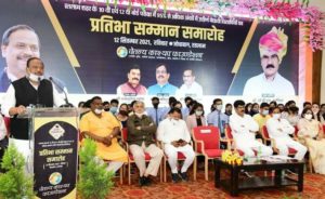 प्रतिभा सम्मान समारोह की अध्यक्षता फाउण्डेशन अध्यक्ष एवं विधायक चेतन्य काश्यप ने की। इस अवसर पर ग्रामीण विधायक दिलीप मकवाना पूर्व विधायक श्रीमती संगीता चारेल प्रदीप उपाध्याय निर्मल कटारिया आयोजन समिति के सलाहकार शैलेन्द्र डागा जिला पंचायत प्रधान प्रमेश मईड़ा मंचासीन रहे। प्रभारी मंत्री श्री भदौरिया ने कहा कि चेतन्य काश्यप फाउण्डेशन वर्ष 2014 से प्रतिभा सम्मान समारोह आयोजित कर रहा है। हर वर्ष दो से ढाई हजार विद्यार्थी सम्मानित होते हैं लेकिन इस वर्ष कोरोना महामारी के कारण सीमित संख्या में विद्यार्थी सम्मानित किए जा रहे हैं।