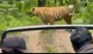 @ सिवनी पेंच में बाघ का रोका रास्ता, पर्यटकों की सांसें अटकी, लापरवाहों पर कार्यवाही