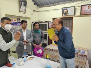 खबर मध्य प्रदेश के जबलपुर से हैं जहां आज दिनांक 26- 11- 2021 दिन शुक्रवार को दोपहर मैं संजीव ताम्रकार L I railway को श्री हरिवंश राय बच्चन जी के जन्मदिवस पर ए डीआर एम जबलपुर के द्वारा साहित्य रचना अवार्ड प्रदान किया गया। अवार्ड मिलने पर उनके साथी कर्मचारियों एवं शुभचिंतकों के द्वारा लगातार बधाई एवं शुभकामनाएं देने वालों का ताता लगा हुआ है।