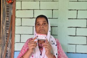 ત્યારબાદ NFSA રેશનકાર્ડ નંબર ફમિલી આઈ ડી. માં નાખી તમારું કુટુંબ સર્ચ કરવાનુ રહેશે. આધાર લીંક મોબાઈલથી e-kyc પ્રક્રિયા પૂર્ણ કરી કાર્ડ બનાવવાનુ રહેશે. ૮૦% ઉપર મેચિંગ સ્કોર થશે તો કાર્ડ ૧૫ મીનીટમાં ઓટો એપ્રુવ થઇ જશે અન્યથા ૬૦ થી ૮૦ % એપ્રુવલ માટે સ્ટેટ વેરીફાઈ ઓથોરીટી પાસે જશે. જેથી કાર્ડ બનાવતી વખત્તે ૮૦% થી સુધી મેચિંગ સ્કોર રહે તેના માટે આધારકાર્ડ અને રેશનકાર્ડ માં (અંગ્રેજી નામ) ચેક કરાવીને કાર્ડ બનાવવું જરૂરી છે.
