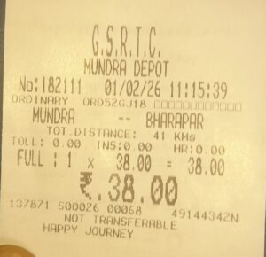 Home » મુંદરા એસ.ટી. ડેપોના પ્રશાસનની ગંભીર બેદરકારીના કારણે સામાન્ય મુસાફરોને ભારે હાલાકીનો સામનો કરવો પડ્યો હતો. મુંદરાથી ભુજ જતી એસ.ટી. બસ, જેનો નિર્ધારિત સમય સવારે ૧૦:૦૦ વાગ્યાનો હતો, તે સવા કલાકથી વધુ મોડે સવારે ૧૧:૧૫ વાગ્યે રવાના કરવામાં આવી હતી.