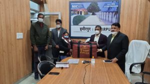 हमीरपुर 06 जनवरी 2022 आज प्रदेश के समस्त जनपदों में स्वरोजगार हेतु संचालित विभिन्न योजनाओं में स्वरोजगार संगम कार्यक्रम के अंतर्गत ऑनलाइन ऋण वितरण मेला का आयोजन एनआईसी के माध्यम से किया गया। इसके अंतर्गत प्रदेश के माननीय मुख्यमंत्री जी द्वारा 506995 लाभार्थियों को 4314 करोड़ का ऋण वितरित किया गया। इसी क्रम में जनपद हमीरपुर में एनआईसी में आयोजित कार्यक्रम में जिलाधिकारी डॉ चंद्र भूषण ने स्वरोजगार योजना के अंतर्गत विभिन्न योजनाओं में ऋण हेतु आवेदन करने वाले विभिन्न लाभार्थियों को ऋण स्वीकृत पत्र तथा ओडीओपी एवं विश्वकर्मा श्रम सम्मान योजना के अंतर्गत विभिन्न ट्रेड के लाभार्थियों को टूल किट का वितरण किया । ज्ञात हो कि आज जनपद के कुल 22 लाभार्थियों को विभिन्न योजनाओं के अंतर्गत 36.69 लाख का ऋण वितरित किया गया जिसका स्वीकृति प्रमाण पत्र जिलाधिकारी ने संबंधित लाभार्थियों को दिया है। इसके अंतर्गत प्रधानमंत्री रोजगार सृजन कार्यक्रम के अंतर्गत 10 लाभार्थियों को 18 लाख 51 हजार का ऋण, मुख्यमंत्री युवा स्वरोजगार योजना के अंतर्गत 9 लाभार्थियों को 16 लाख 38 हजार रुपए का ऋण , वन डिस्टिक वन प्रोडक्ट के अंतर्गत 03 लाभार्थियों को 01 लाख 80 हजार का ऋण उपलब्ध कराया गया है। इसके अलावा विश्वकर्मा श्रम सम्मान योजना के अंतर्गत कुल 50 लाभार्थियों को टूल किट भी वितरित किया गया। इस मौके पर जिलाधिकारी ने हसन खान ,जितेंद्र कुमार ,विमल कुमार, मोहम्मद मोइन को स्वयं अपने हाथों से ऋण स्वीकृत पत्र तथा सोनी , मंजू वर्मा को दर्जी टूल किट का वितरण किया।