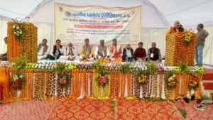 इसलिए शासन प्रशासन को पूरी तरह से इनके बताए हुए तथ्यों पर विचार करना चाहिए सम्मेलन में विशिष्ट अतिथि प्रोफेसर गिरीशचंद्र त्रिपाठी ने कहा कि पत्रकारों को सदैव अपने मान मर्यादा का ख्याल रखते हुए निष्पक्ष रुप से पत्रकारिता करनी चाहिए जिससे समाज में उनके ऊपर किसी भी प्रकार की उंगली ना उठ सके क्योंकि पत्रकार समाज का दर्पण होता है और दर्पण साफ रहेगा तभी छवि अच्छी दिखाई देगी इस प्रकार उन्होंने और कई अन्य उदाहरण के द्वारा पत्रकारों की भूमिका को सराहा और प्रशंसा की कार्यक्रम का संचालन प्रांतीय महासचिव महेंद्र सिंह वा जिला महासचिव दिगंबर प्रसाद त्रिपाठी ने किया तथा अध्यक्षता प्रदेश अध्यक्ष श्री सौरभ कुमार जी ने किया वहीं पर सम्मेलन में पूरे प्रांत से 66 जिला अध्यक्ष समेत सैकड़ों लोगों ने भाग लिया इस कार्यक्रम में मुख्य रूप से नवल किशोर मिश्र ,बिपिन बिहारी गुप्ता ,दिलबर पाठक, शशि श्रीवास्तव, उमाशंकर गुप्ता, शिव मूरत केशरवानी, राजीव ओझा, कृष्णा केशरवानी, सुशील केशरवानी, राम सजीवन मिश्रा, नागेंद्र मिश्रा, पिंटू सिंह ,नागेंद्र भूषण ,नागेश त्रिपाठी ,राकेश शुक्ला, अशोक कौशल ,लालचंद पटेल, सुभाष गुप्ता ,अशोक मिश्र, हसीन मुस्ताक, दिलीप केशरवानी, राजेश ,राम सजीवन मिश्रा, राजेश शुक्ला, गगन सिंह चौहान,दीपक केसरवानी, शोभनाथ कुशवाहा, रोहन केसरवानी,प्रभाकांत, लक्ष्मण प्रसाद द्विवेदी, अब्दुल अलीम शास्त्री, रामबाबू पटेल, रमेश पटेल, शिवाकांत, बलवीर सिंह, महेश प्रसाद तिवारी, राकेश कुशवाहा, राकेश पटेल, राजेश सोनकर, रवीन्द्र श्रीवास्तव, विनय विश्वकर्मा, विवेक अग्रहरी, विकास गुप्ता, नीरज श्रीवास्तव, विनोद कुमार शुक्ला, सूबेदार सिंह, मानसिंह, नईम अहमद, छेदी लाल साहू, केसी साहू, शंकर लाल साहू, अशोक मिश्रा, लालता प्रसाद मिश्रा, सतीश कुशवाहा, गिरजा शंकर सिंह, राजेश केसरवानी, समेत सैकड़ों पत्रकार उपस्थित थे।