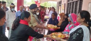 तथा बाल विकास एवं पुष्टाहार विभाग के स्टाल पर प्रभारी डीएम ने एसएसपी के साथ 03 गर्भवती महिलाओं श्रीमती शकीला बानो पत्नी मो. आकिब, हिना बानों पत्नी शाहिद व रेखा पत्नी पवन की गोद भराई की 07-07 माह के 02 बच्चों आफान व रोज़ी को अन्न प्रासन्न कराया। बाल विकास एवं पुष्टाहार विभाग के स्टाल के निरीक्षण के दौरान सीडीपीओ द्वारा प्रभारी डीएम व एसएसपी को पोषण वाटिका में निर्मित सहजन पत्तियों के पाउडर के बारे में भी जानकारी प्रदान की गयी।