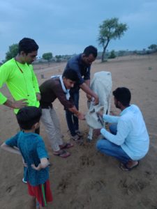 गांव छिला में आवारा गुमने वाले पसुओ का प्राथमिक उपचार कर रहे है LSA बुधाराम महिया