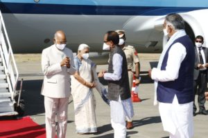 राज्यपाल एवं मुख्यमंत्री ने की विमानतल पर आगवानी.