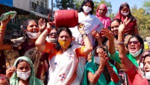 महापौर मंजू मेहरा ने सिर पर गैस सिलेंडर रख कर मोदी सरकार का जताया विरोध