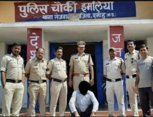 Home » दमोहः इमालिया चौकी पुलिस ने 8 माह से फरार इनामी आरोपी को सगोनी कला से पकड़ा