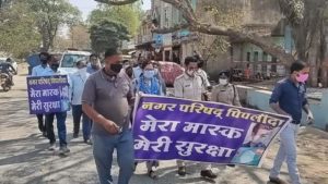 के तहत कलेक्टर महोदय एवं अनुविभागीय अधिकारी महोदय के निर्देशानुसार नगर परिषद टीम व पुलिस प्रशासन द्वारा नगर में सायरन बजा कर सम्पूर्ण नगर का भृमण किया व मास्क के प्रति जन जागरूकता के लिए रैली निकाल कर मास्क वितरण किये व कोरोना के संक्रमण से बचाव के लिए मास्क की उपयोगिता का प्रचार प्रसार किया।