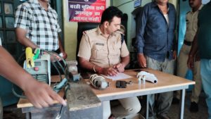 *कटनी=* पुलिस अधीक्षक के मार्गदर्शन में लगातार अवैध रूप से संचालित गतिविधियो पर धर पकड़ करने में निर्देशो के तारतम्य मे दिनांक 01/07/2021 को मुखनीर की सूचना पर अमरपुर रोड पर बुद्धसेन विश्वकर्मा निवासी रामनगर सतना को लाल रंग की मोटर सायकल के साथ रोका गया उसके पास रखे। बैग चेक किया जो उसमे अवैध देशी (12) बोर का कट्टा उसमे फसा जिंदा (12) बोर का कारतूस था जो मौके पर 25/27 आर्म्स एक्ट में आरोपी बुद्धसेन विश्वकर्मा को गिरफ्तार किया गया आरोपी बुद्धसेन के द्वारा बताया गया कि वह कट्टा बनाता है उसका समस्त कट्टा बनाने का सामान रामनगर के ग्राम मड़खरा मे रखा हुआ है आरोपी बुद्धसेन के बताये अनुसार थाना रामनगर के ग्राम मड़खरा जाकर निशादेही पर एक ग्रान्डर मशीन, एक बेल्डिंग मशीन (1) वाइस लोहा दबाने की मशीन जिंदा (12) बोर का कारतूस पकड़ा गया आरोपी बहुत शातिर था जो पुलिस हिरासत से भागा पर उसे तत्काल ग्राम सहजना थाना गोविंदगढ़ जिला रीवा से गिरफ्तार भी किया गया आरोपी बुद्धसेन व्दारा और भी लोगो के नाम बताये है जिनकी जाँच जारी है।